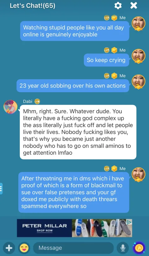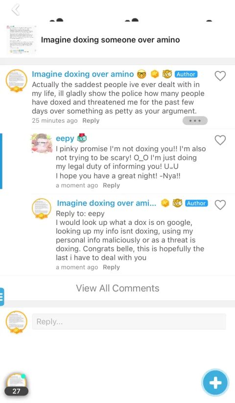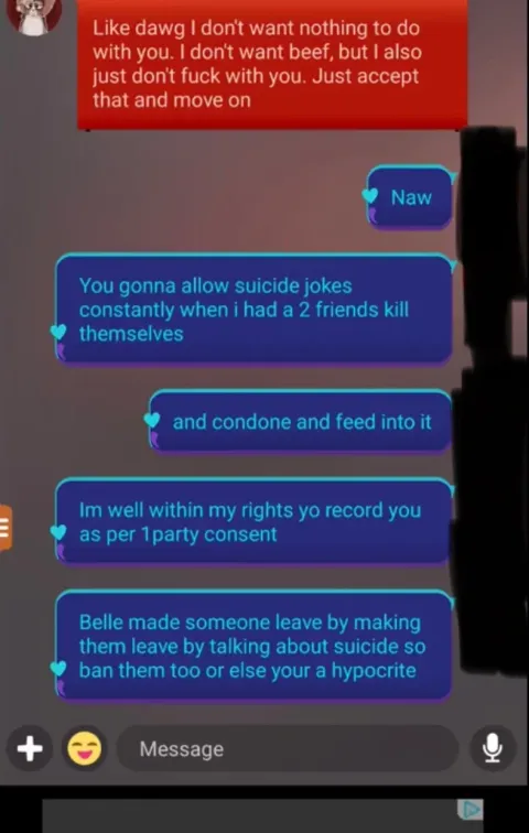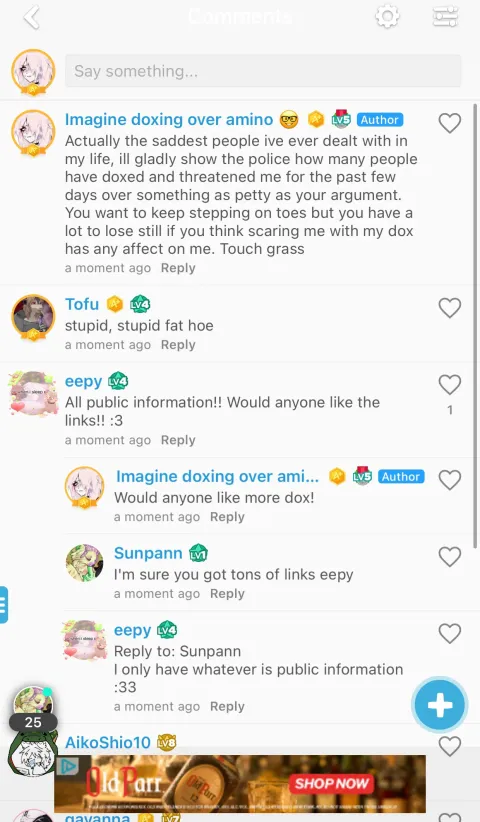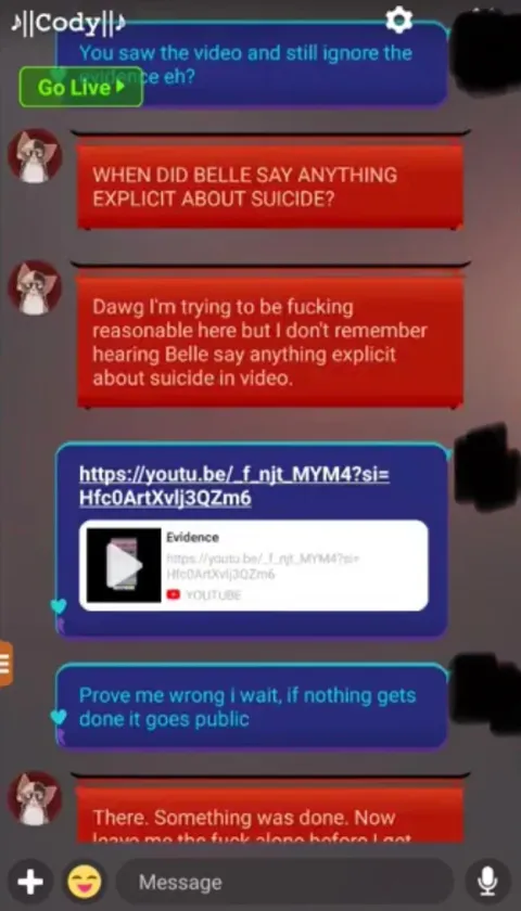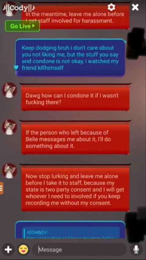A large fight ensued on furries-amino when Belle decided to publicly dox Sparier and threatened to end his life with many other mentally ill furry users