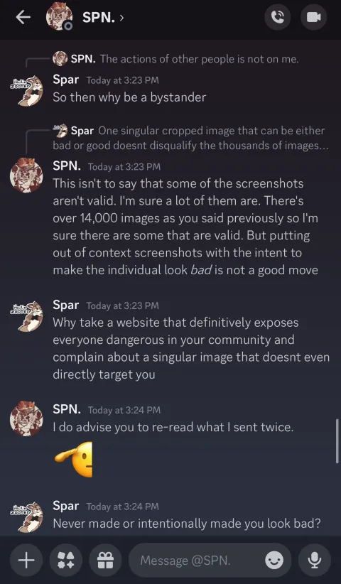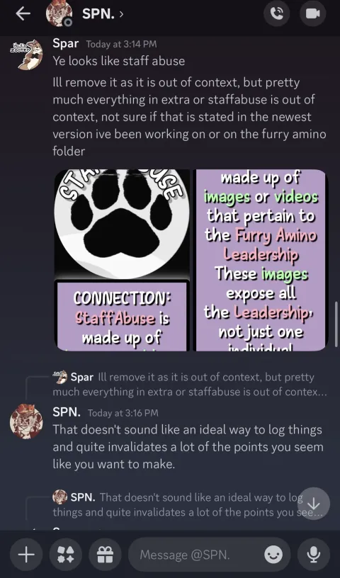 Cas insisted that Sparier is “calling her out” due to a singular image found in the out of context Staff Abuse folder