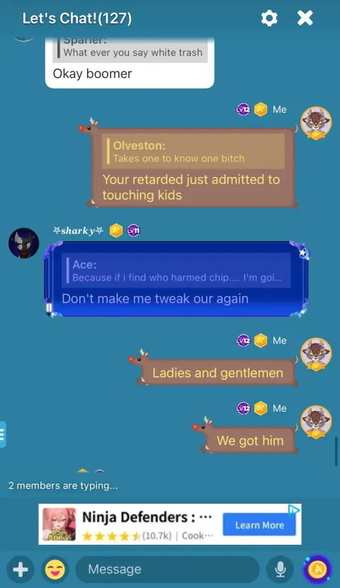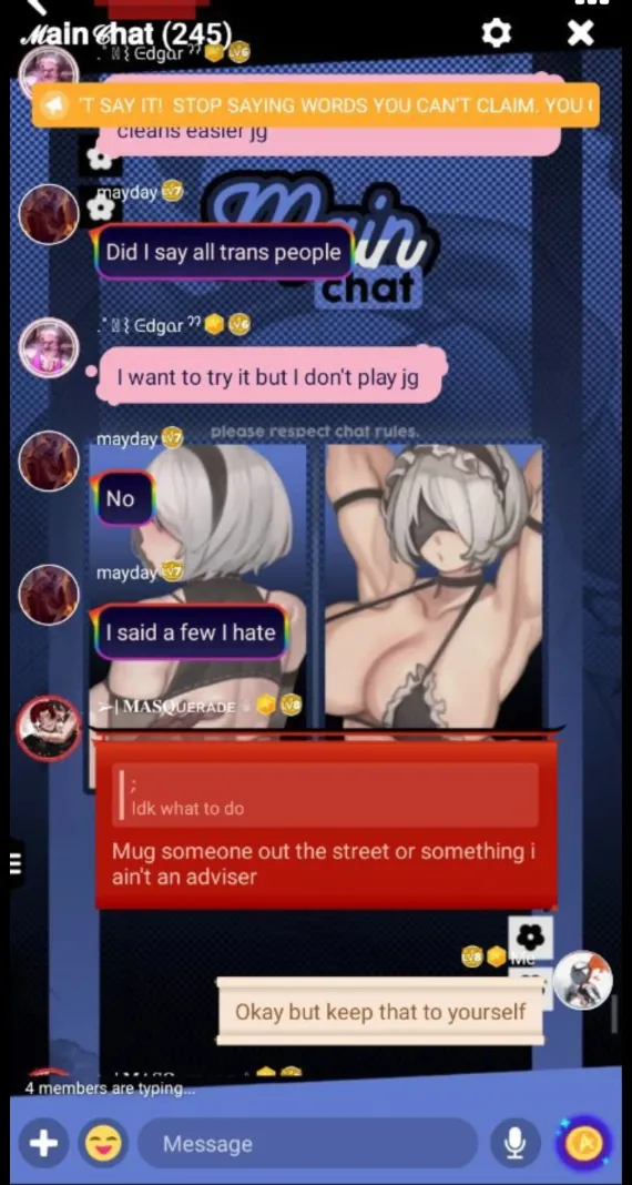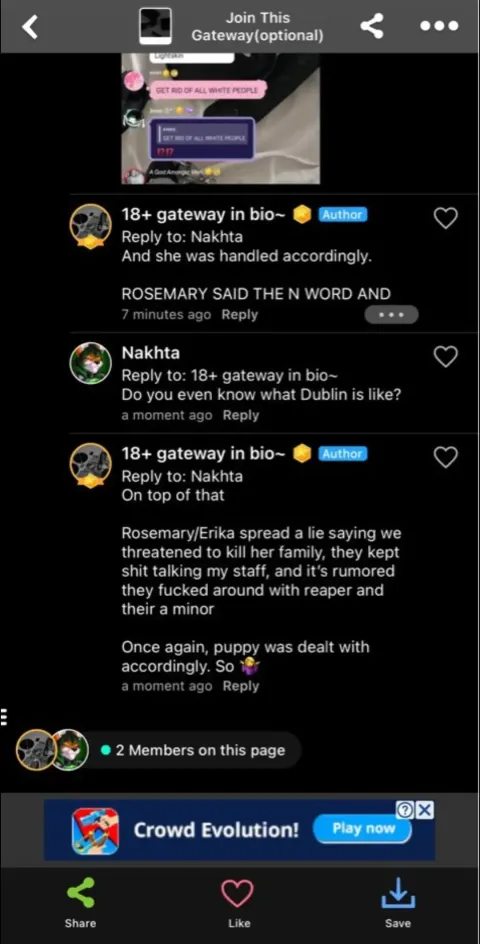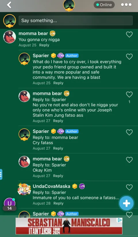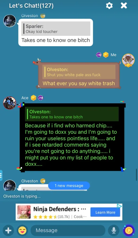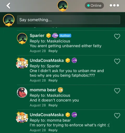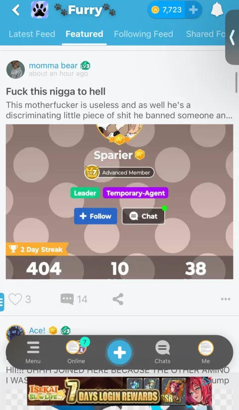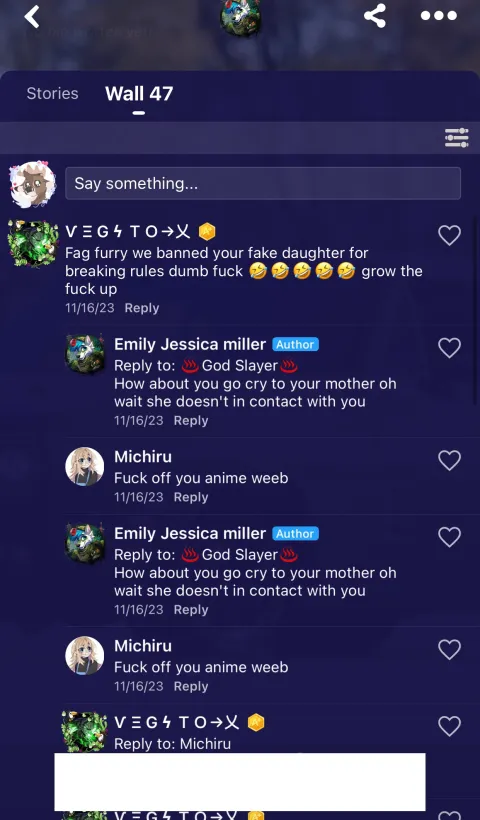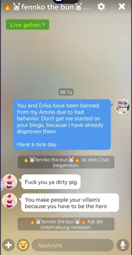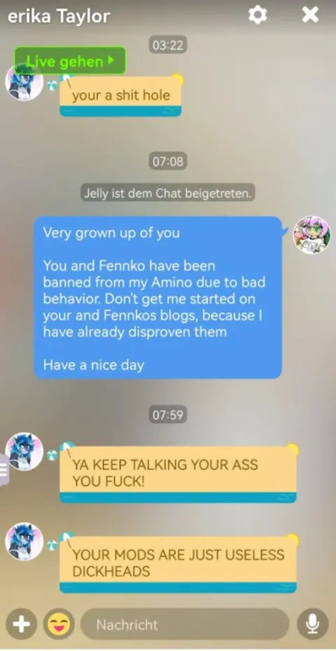 Erika was reported to Sparier after rampaging through aminos pretending to be an African American, sexually role-playing as underage characters, and dox threats