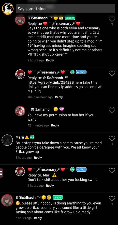 Erika tried to track a user's IP address with Grabify links to dox multiple individuals in the Eclipse amino