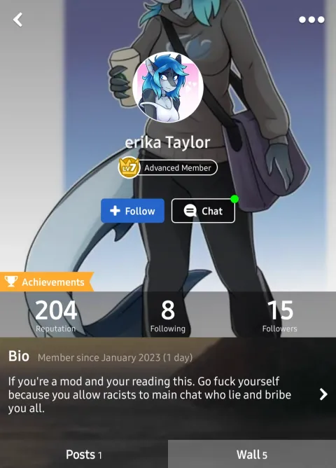 Erika spoke sexually towards a minor on their account Ben within the only furries-amino chatroom