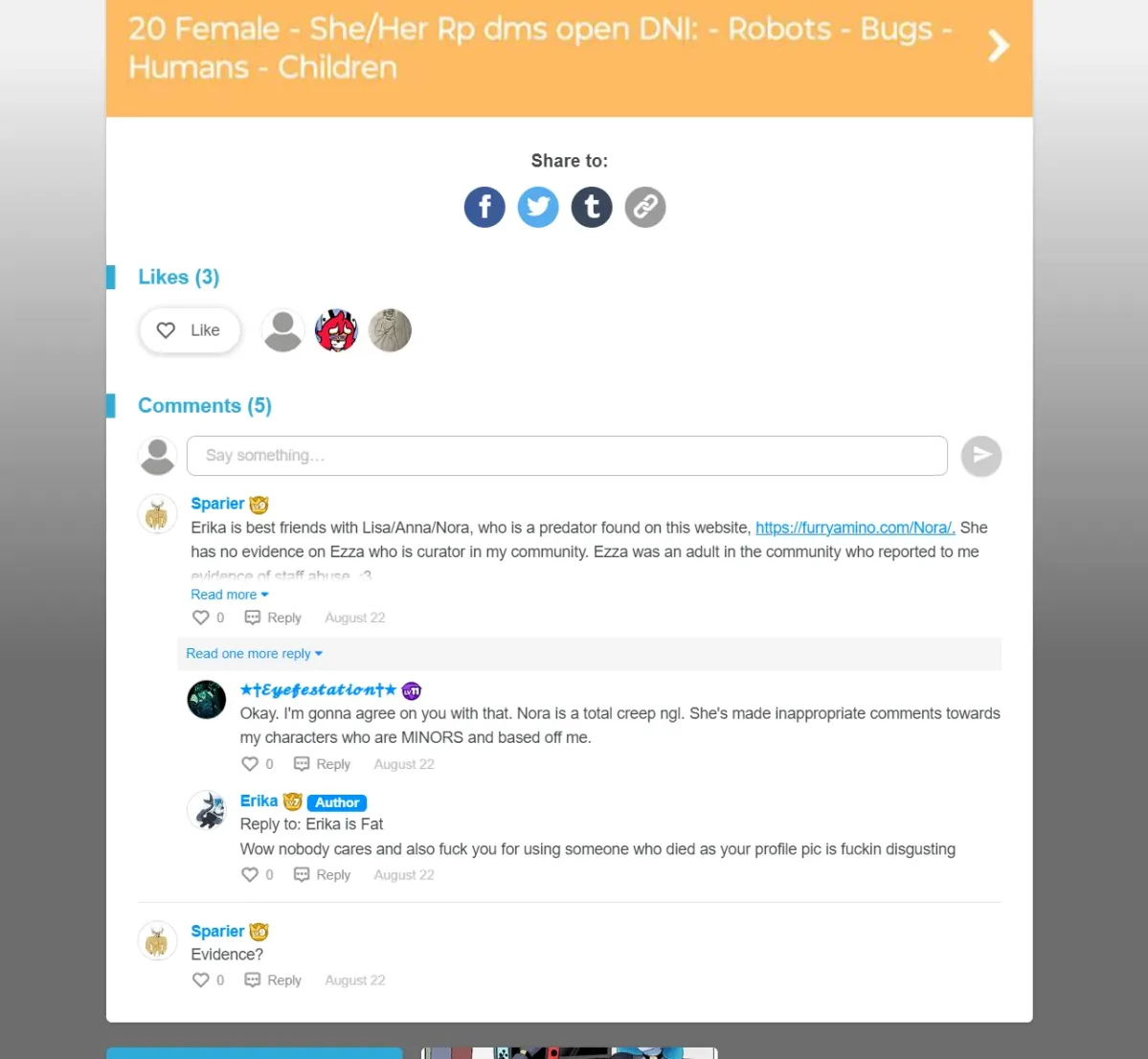 Erika was exposed on their Mary account for sexually role-playing as underage furry characters in nearly every furry amino community