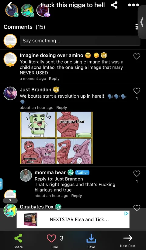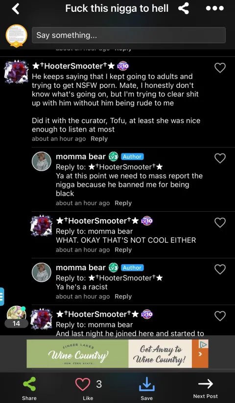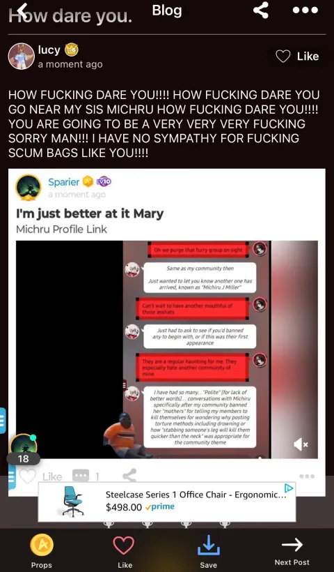 Erika witch hunted Sparier by rumoring that he banned the predators of Furry568 over the color of their skin