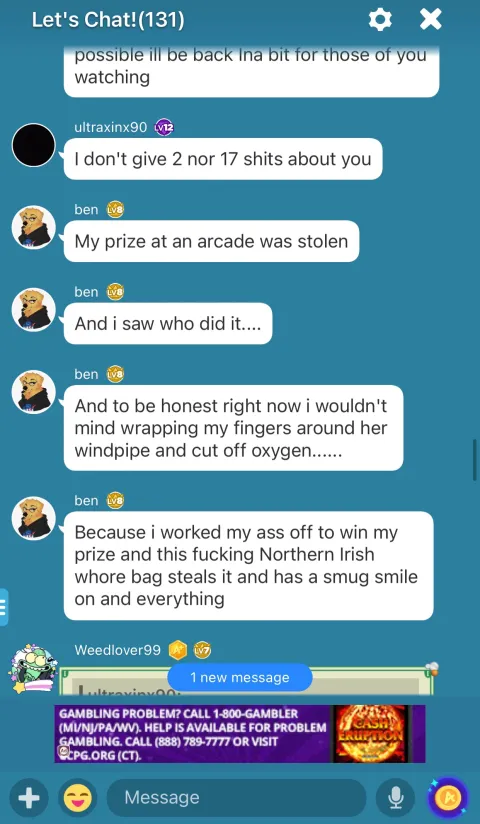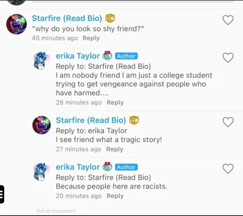 Erika claimed many users to be racists, but indulges in using slurs herself
