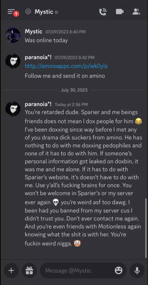 Curator Slumber queen (aka Sleepy Vinca) was on a warpath to raid Sparier's communities using the disproven allegations the furry-amino leadership have spread around to protect themselves and to shovel the blame