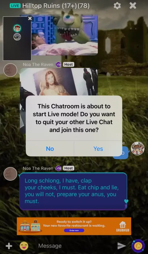 Cropped pornography sent in the most popular chatroom on furry-amino
