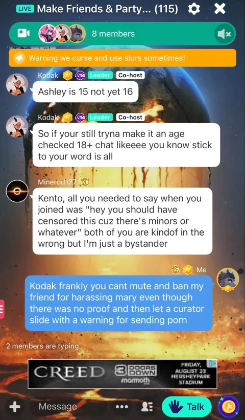 Leader Kodak was exposed in their Furry568 community for role-playing with zoophiles and endangering underage users by allowing predatory behavior