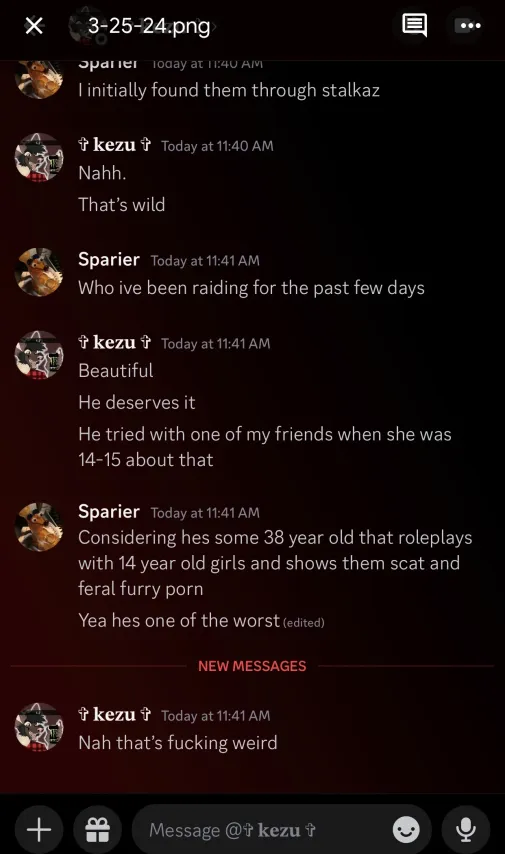 Stalkaz continued to receive allegations of grooming 14-15 year old girls on furry-amino.