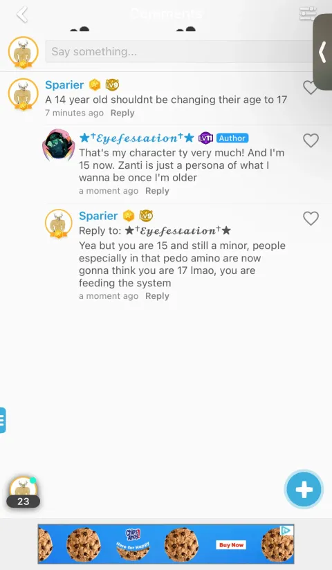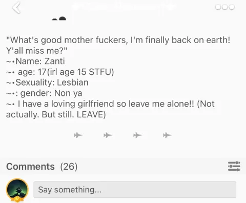 Zanti pretended to be an older age and participated in a pedophile amino (owned by Agent Junya) that is filled with pornography