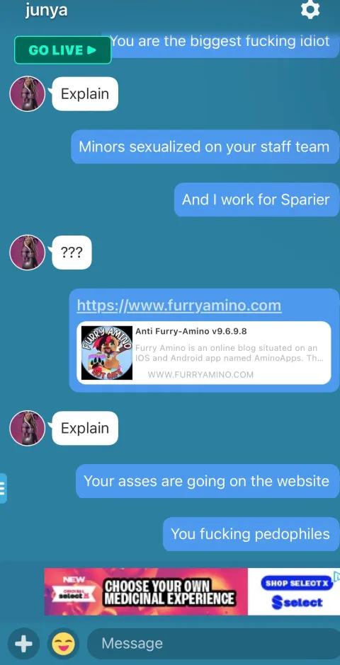 A) Agent Junya advertised their pornography filled amino all over furries-amino which is mostly filled with minors