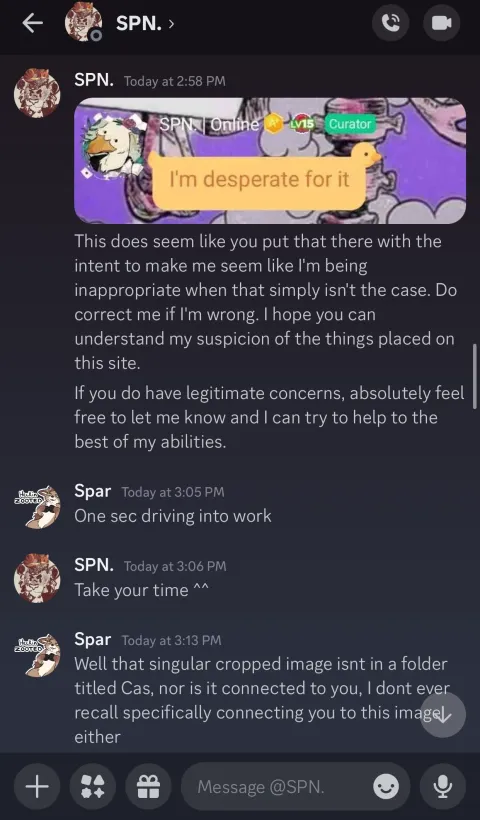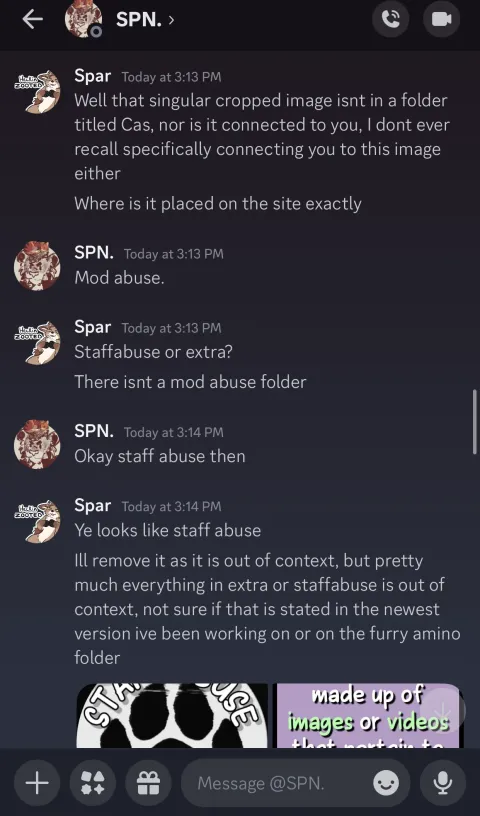 Cas insisted that Sparier is “calling her out” due to a singular image found in the out of context Staff Abuse folder