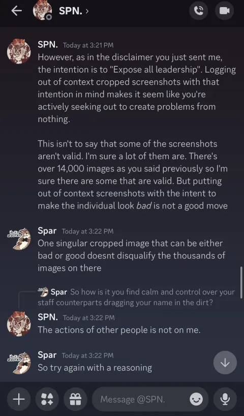 Cas insisted that Sparier is “calling her out” due to a singular image found in the out of context Staff Abuse folder