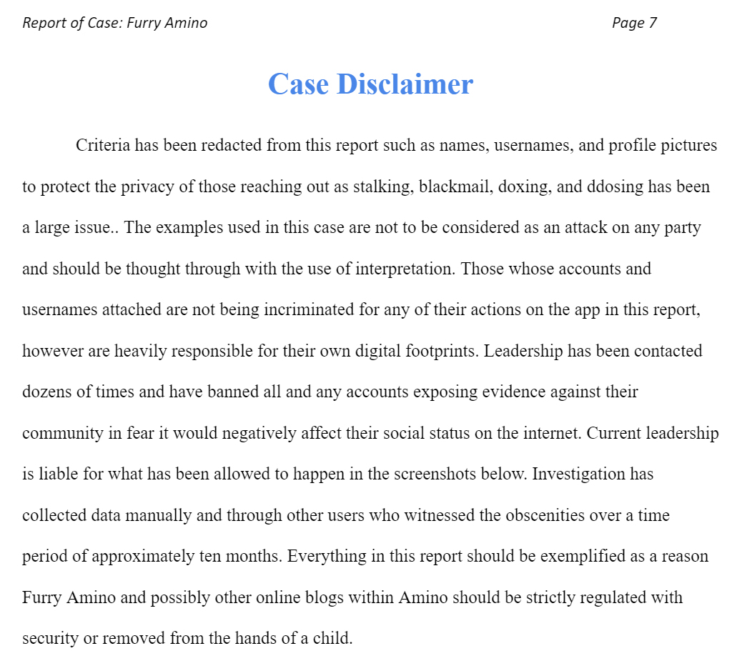 Furry-Amino Exposed has no attachments to any vigilante advertising or outside investigations.
