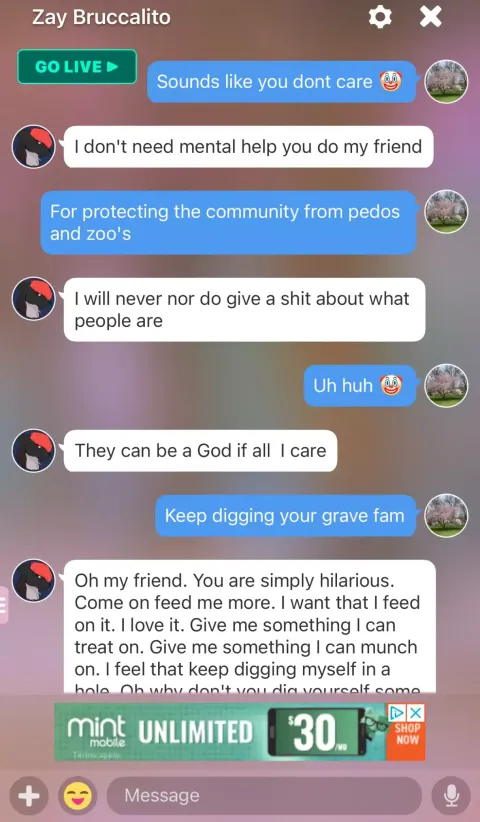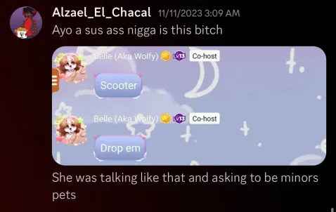 Fernona participated and actively chatted in the predatory furry-amino chatroom run by Jericho and Belle