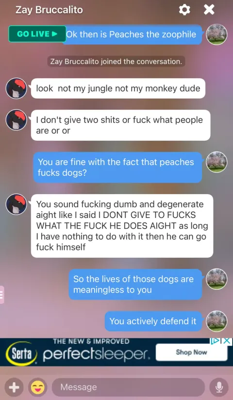 Zay Bruccalito defended zoophiles like Peaches and influenced the normalization of them in the furry fandom