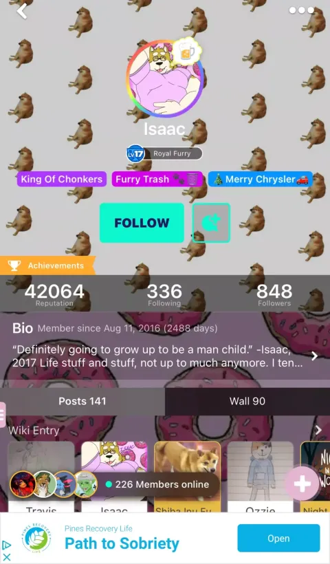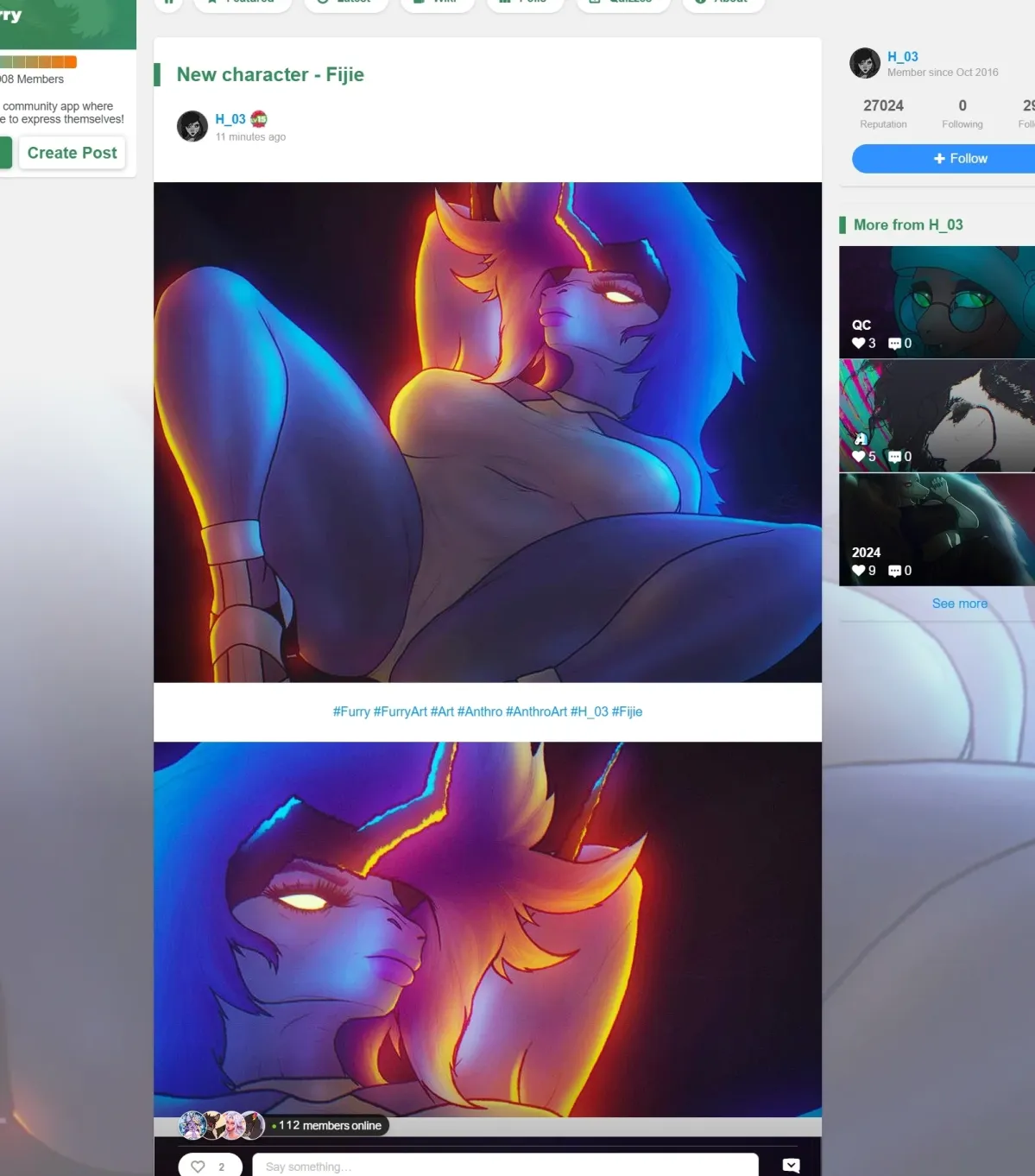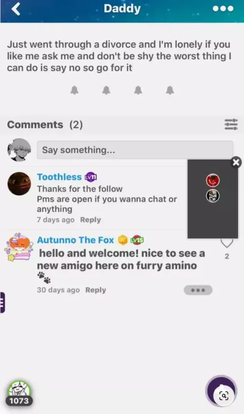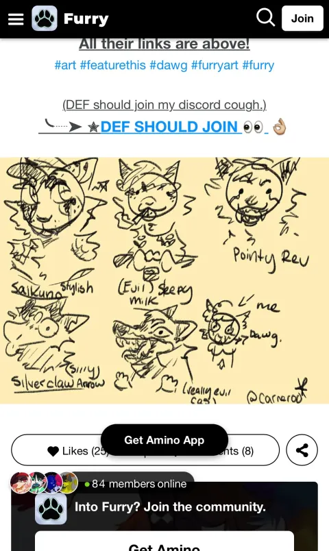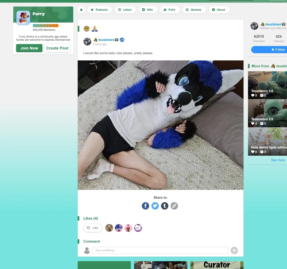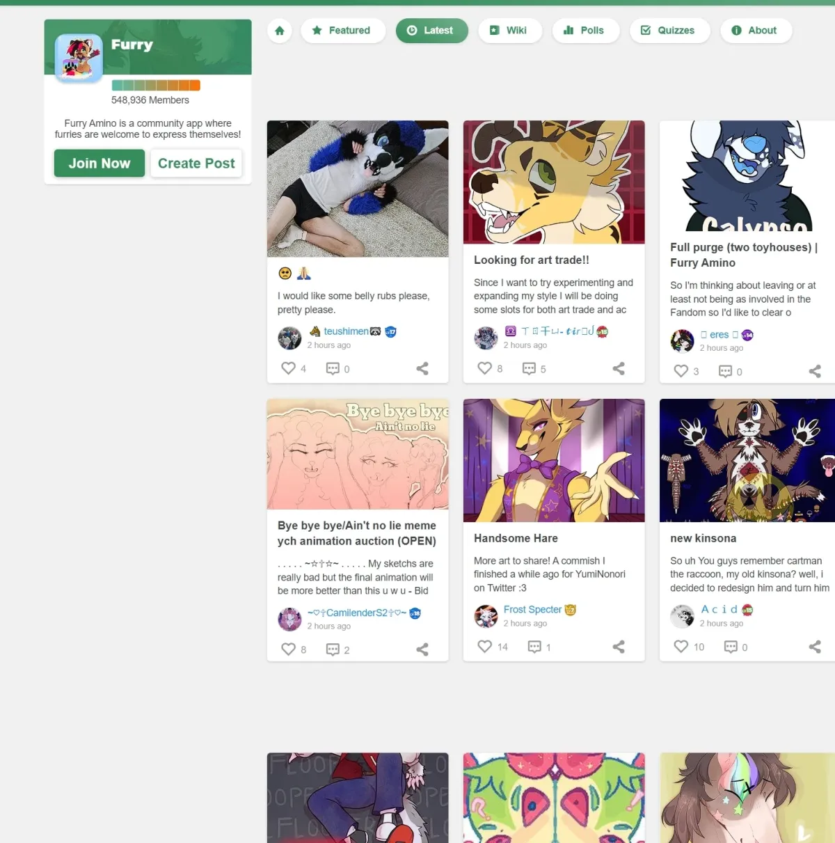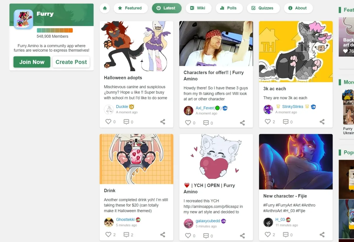 Front page of furry-amino