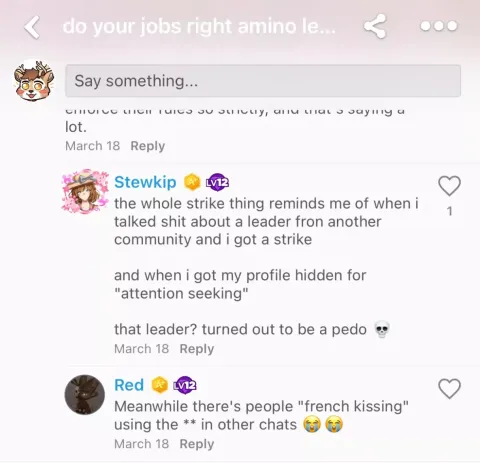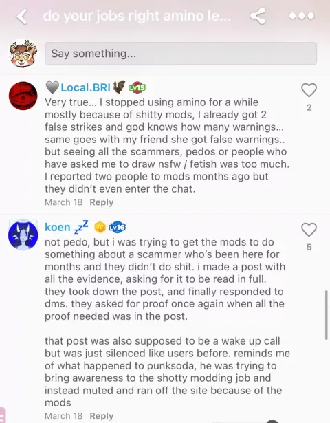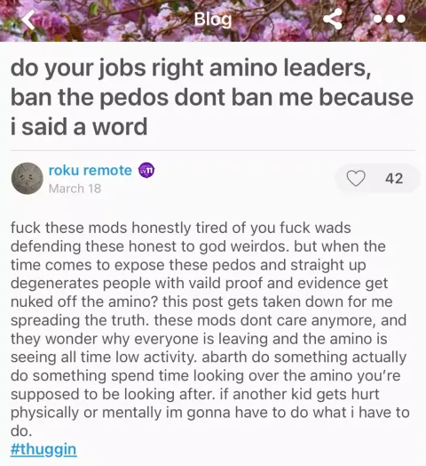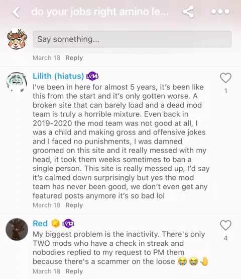 Absolutely zero moderation from furry-amino Leaders