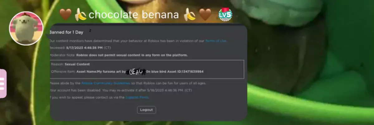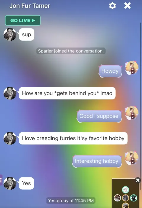 Cropped pornography sent in the most popular chatroom on furry-amino