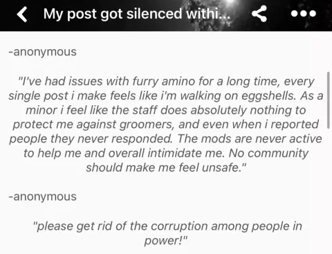 Censored posts that exposed his furry-amino Leadership team