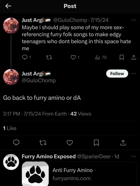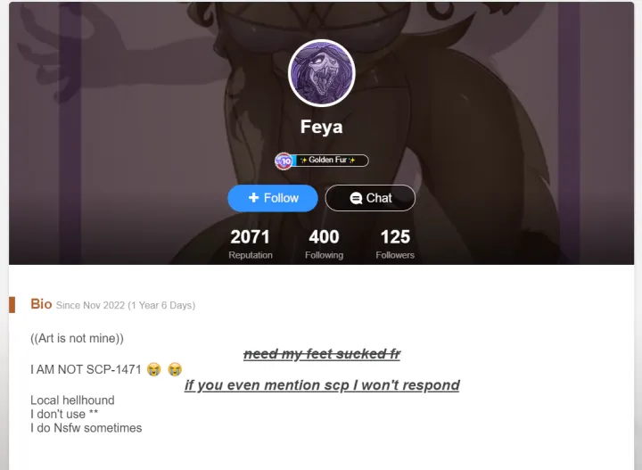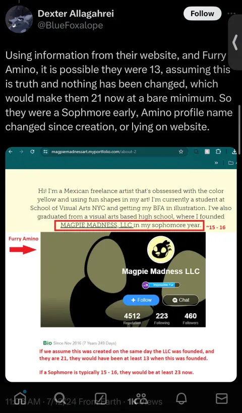 Agent Lord Aberth linked his pornographic socials in his furry-amino bio