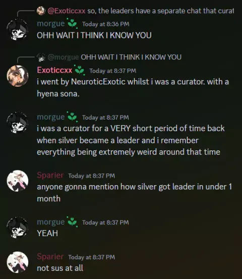 Silver Claw lied and made up a fake timeline as to why Sparier was banned from furry-amino