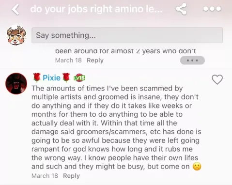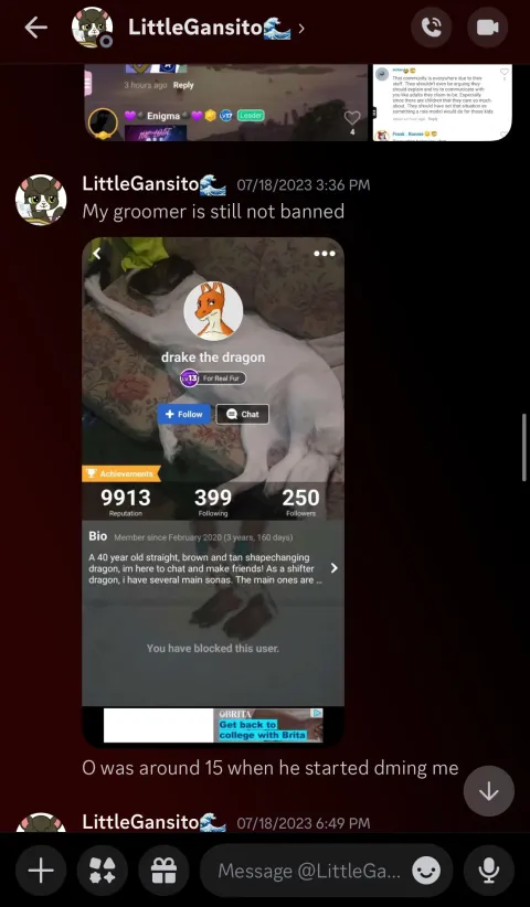Fallen Angel protected many predators on furry-amino in her Discord community, where they engaged in sexual conversations with and around minors