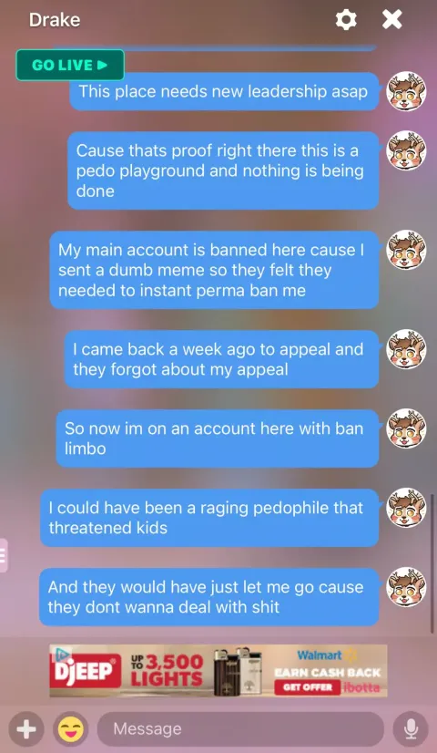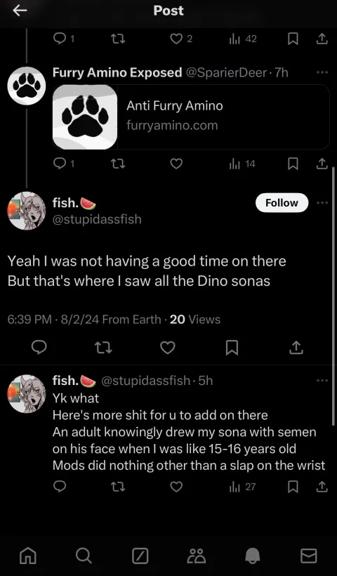 Kipaku posted and engaged in pedophilic artwork and conversations on furry-amino and their socials