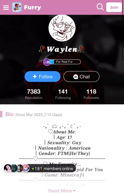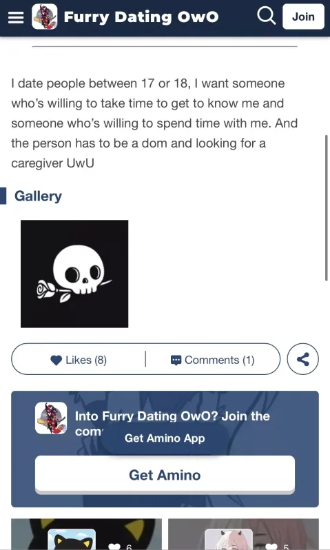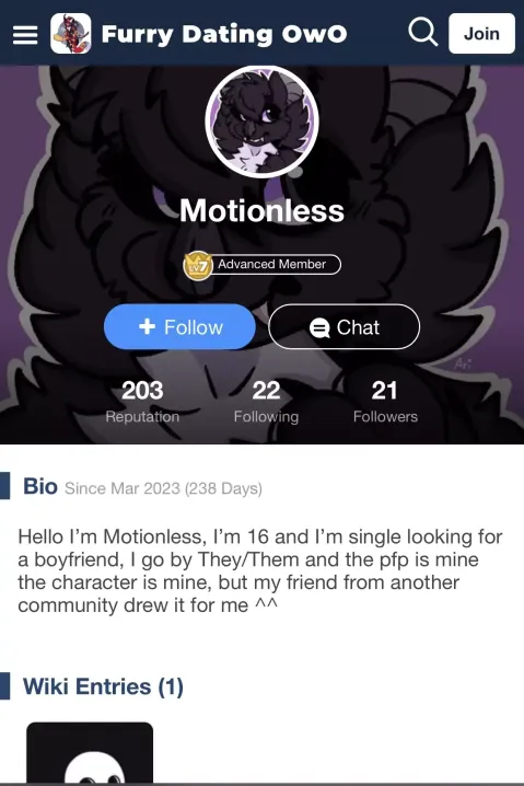 The underage user named Motionless actively sought several adult men to date and manipulate on furry-amino