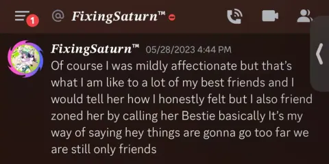 B) Saturn insisted that he was responsibly role-playing with Reaper and wasn't taking anything too far until she was older