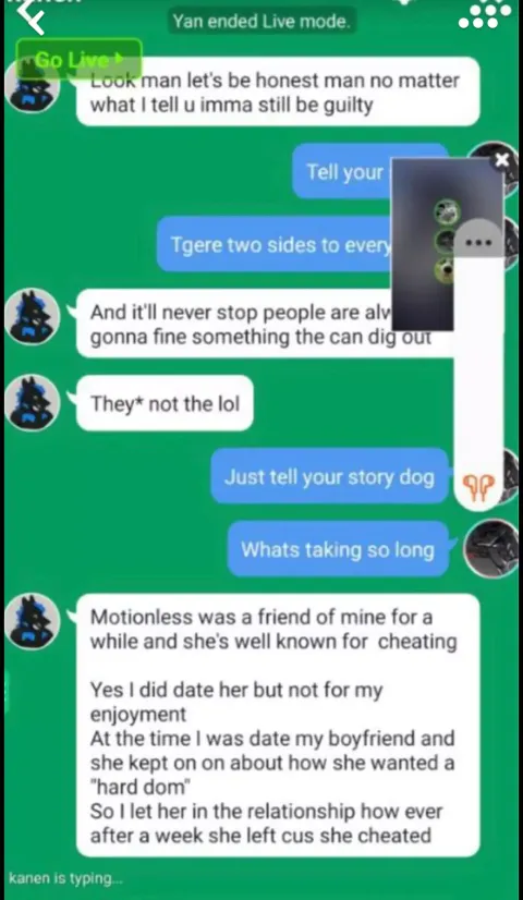 Kanen was a predator on furry-amino and a Curator on ff4e (FurryFandom4Ever) that dated underage Motionless