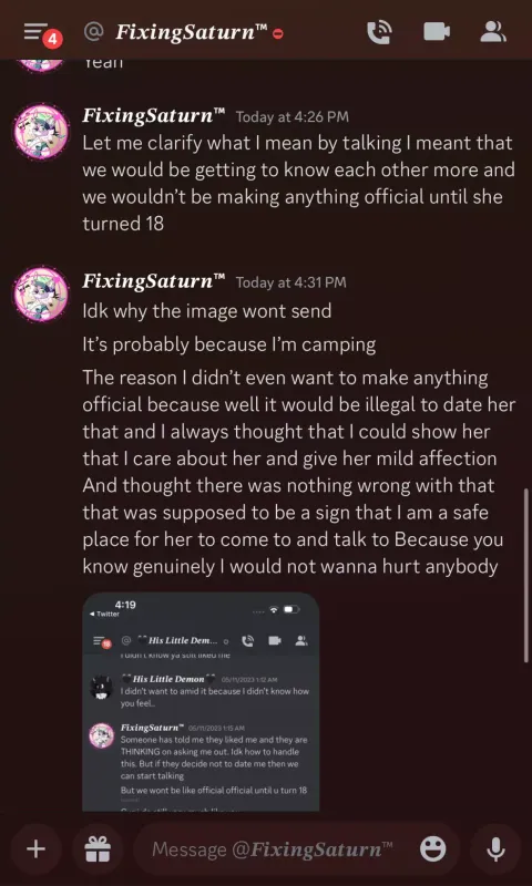 A) Fixing Saturn had inappropriate role-play sessions with an underage user named Reaper