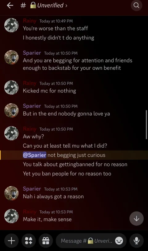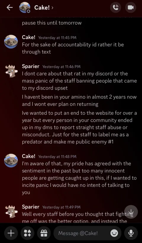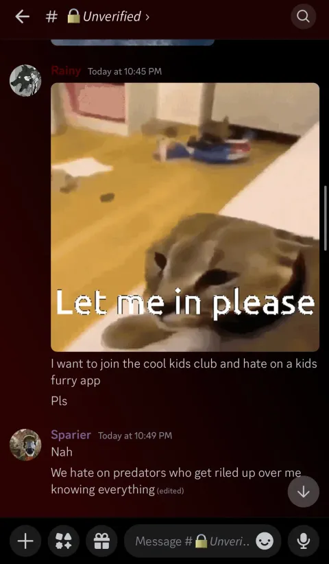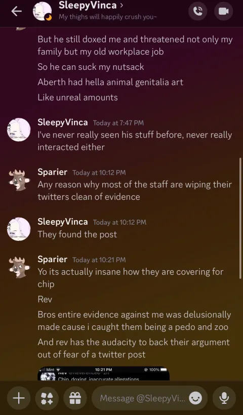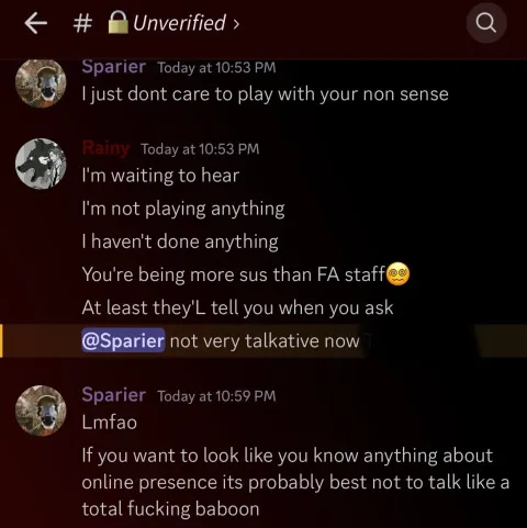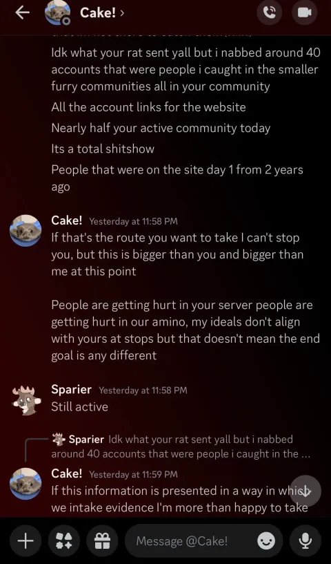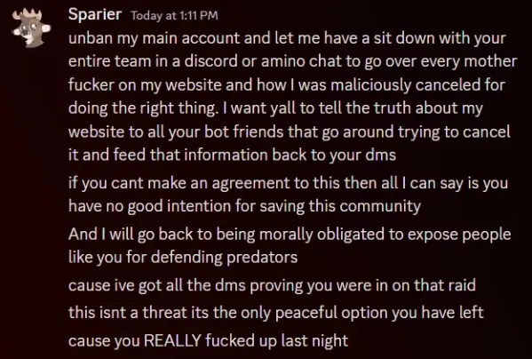 User Rainy joined FurryAminoExposed's discord on Leader Rev's behalf to find evidence on Sparier to use as blackmail