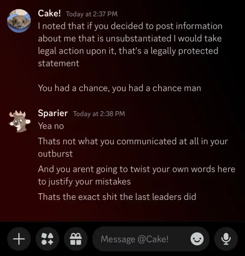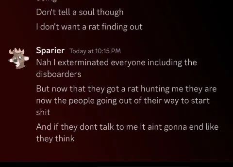 Sparier confronted Leader Rev about the rat he had sent to dox and blackmail in the Discord