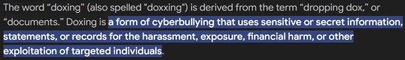 Leader Rev threatened Sparier with a dox of his name, address, and place of workplace and helped Swat him
