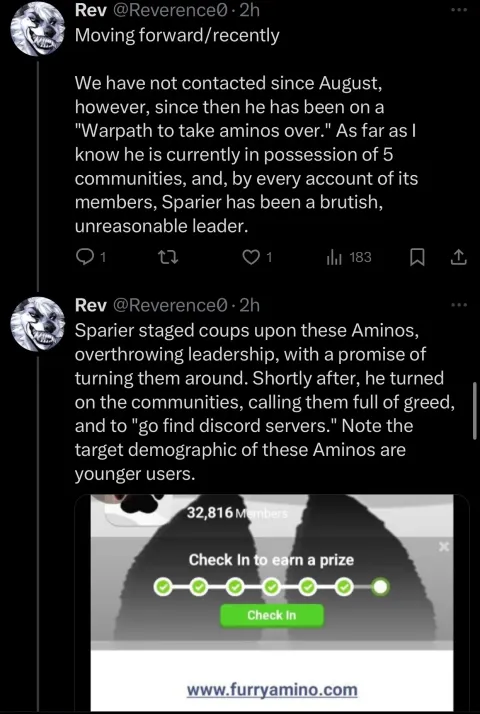 Sparier ended their communities because they were doxed and swatted off the platform in fear by thousands of threats made by the furry-amino leadership