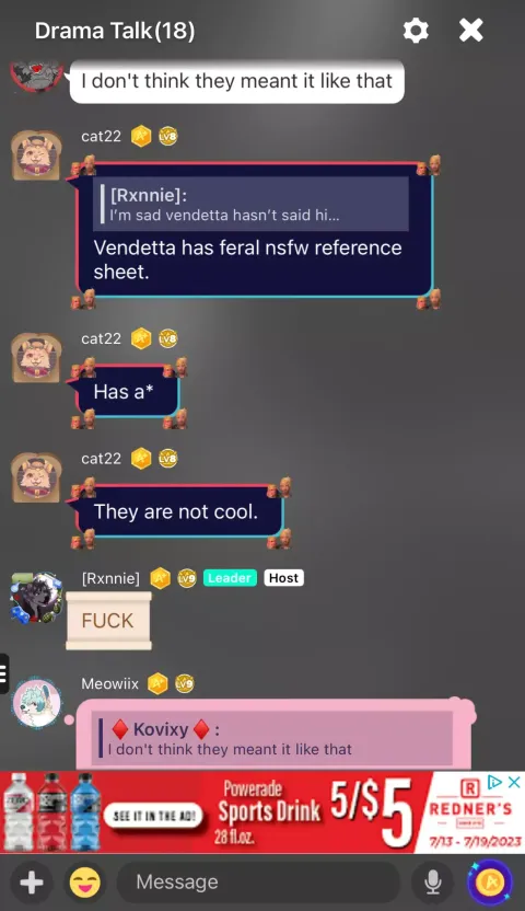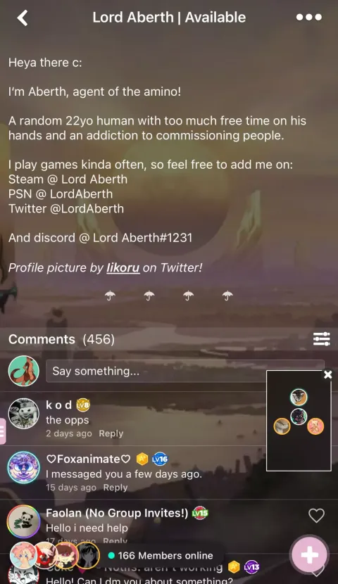 Leader Revenant put his pornographic socials and cropped zoophilic artwork on his profile bio in furry-amino