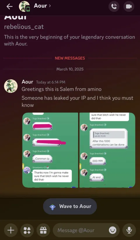 Skullcat used their alternate account named Salem to undercut their predatory friends that were doxing Sparier