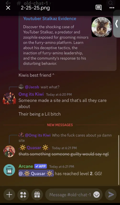 Stalkaz continued to receive allegations of grooming 14-15 year old girls on furry-amino.