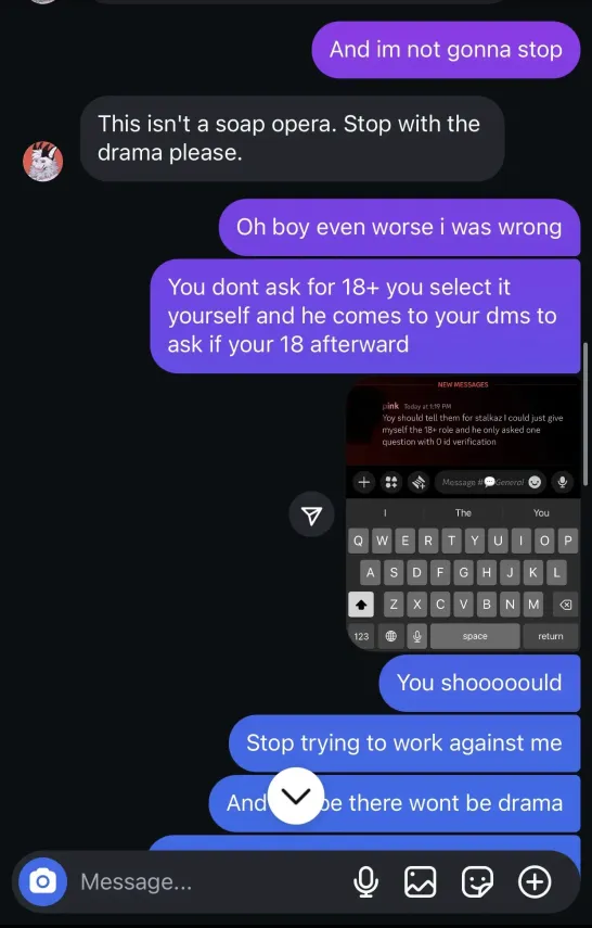 Stalkaz tried to manipulate the situation by adding an "age verification system" and blaming others f0r the NSFW content in his discord.