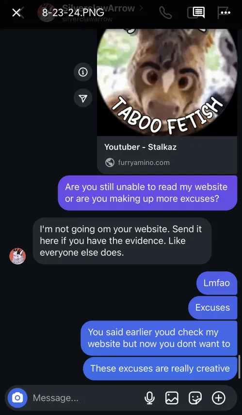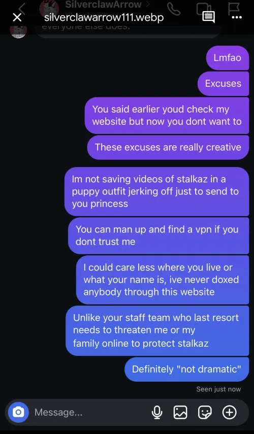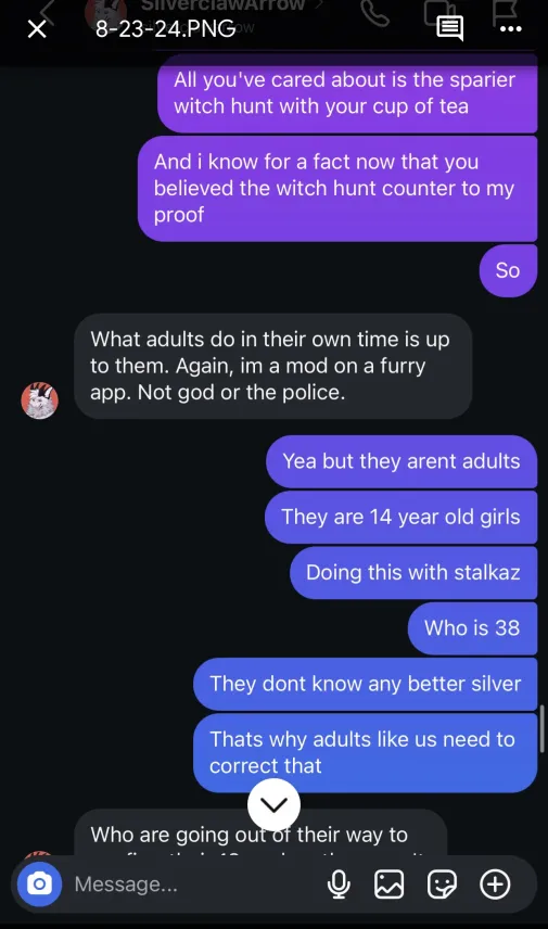 Agent Silverclawarrow continued to deflect all evidence against Stalkaz by blaming the minors and not the pedophile grooming them.