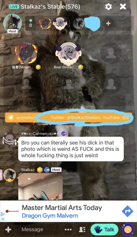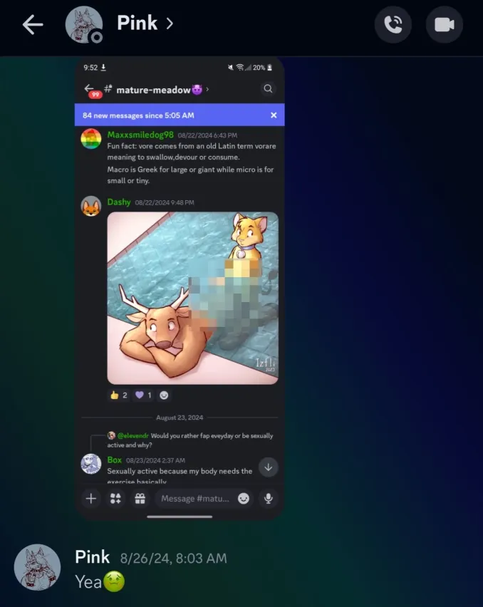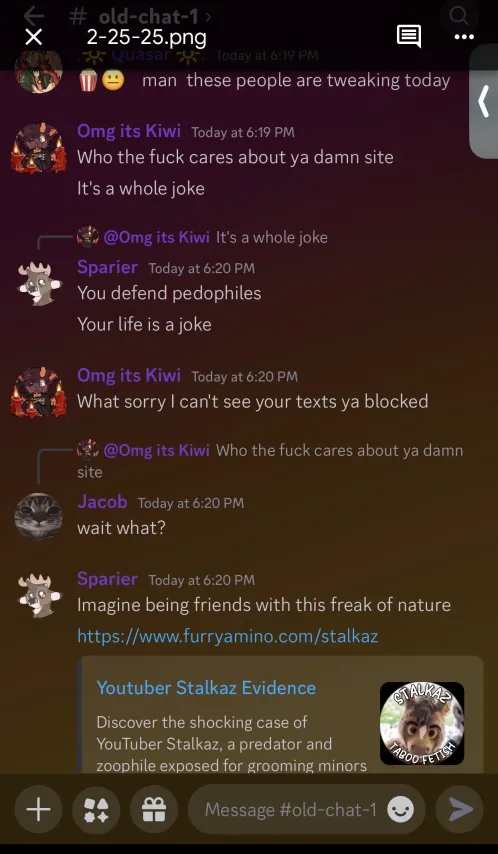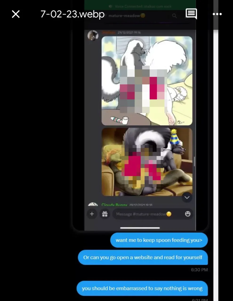 Stalkaz openly explored more NSFW Taboo kinks such as zoophilia fart porn on his Discord for all ages to see.
