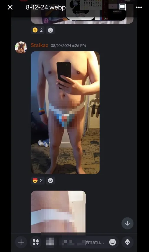 EVIDENCE 9: "STALKAZ SENDS NSFW OF HIMSELF TO MINORS IN HIS DISCORD"