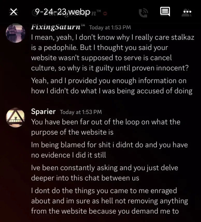 as referenced by this child predator named FixingSaturn who acknowledged Stalkaz was a pedophile.
