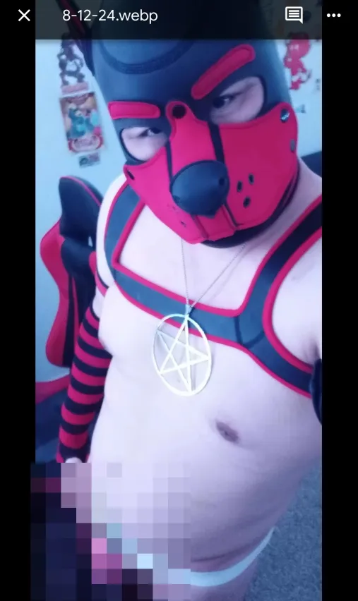 Stalkaz publicly shared more Pornographic photos of himself in a sexual pup-play, harness outfit to users of all ages in his discord.