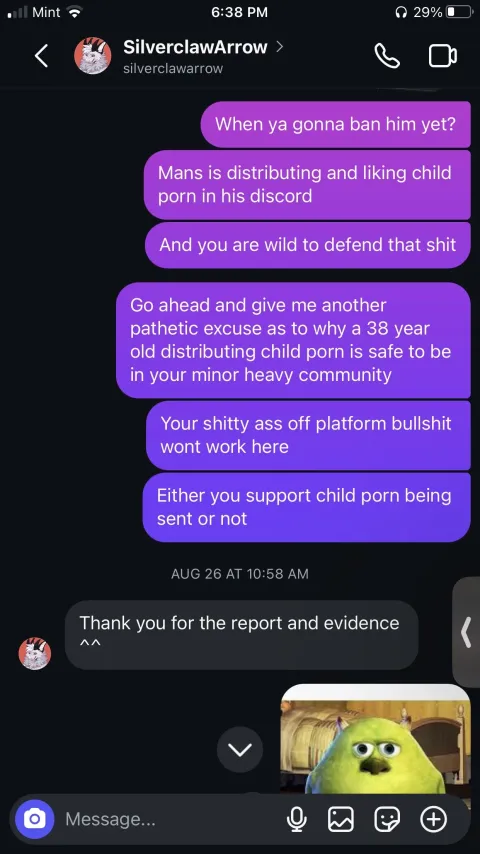Agent SilverClawArrow was shared evidence that Stalkaz gave an underage Furry-AMino user Pornographic content access but they still unjustifiably defended him.