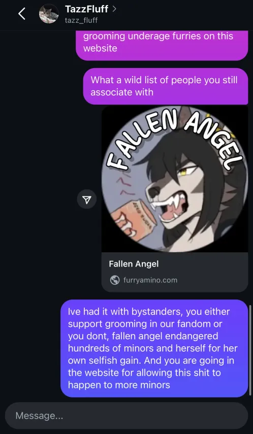 Tazz created artwork for the diabolical users within fallen angels discord and refused to acknowledge their participation in validating pedophiles on furry-amino for over 2 years